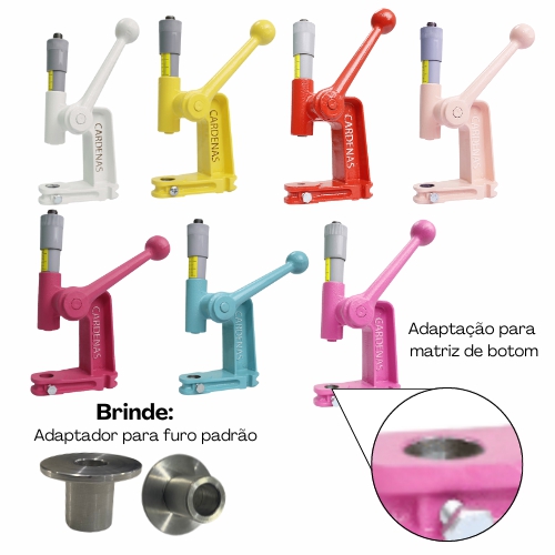 Além das matrizes tradicionais que já conhecemos, ele também serve para matrizes de botton e tem acompanha um adaptador especialmente desenvolvido que, quando encaixado no furo, tem a função de manter o diâmetro do furo original para que as mencionadas tradicionais possam continuar sendo utilizadas normalmente. Desta forma não se torna mais econômico já que não teremos um único balancim com dupla função.